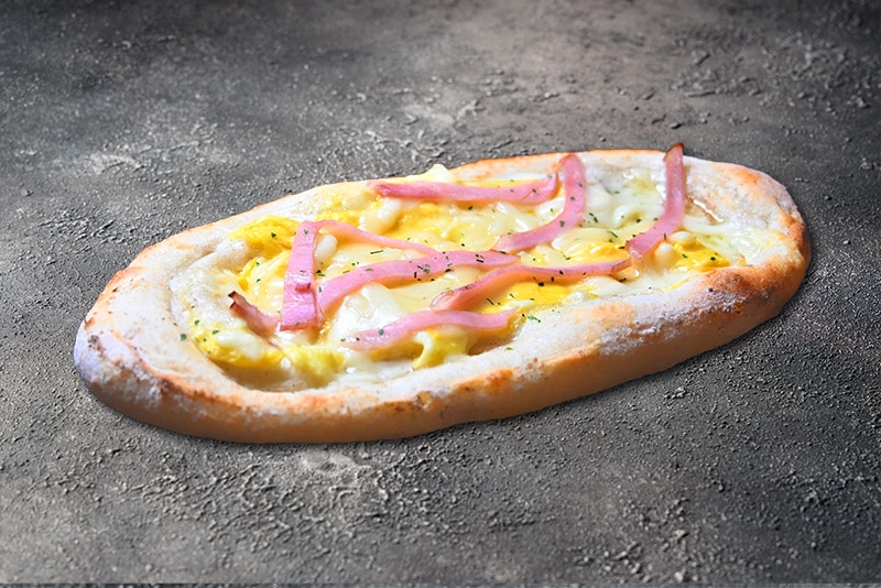 オリジナルのマヨソースをベースに、ふわふわ食感のスクランブルエッグとハム・チーズをトッピング。